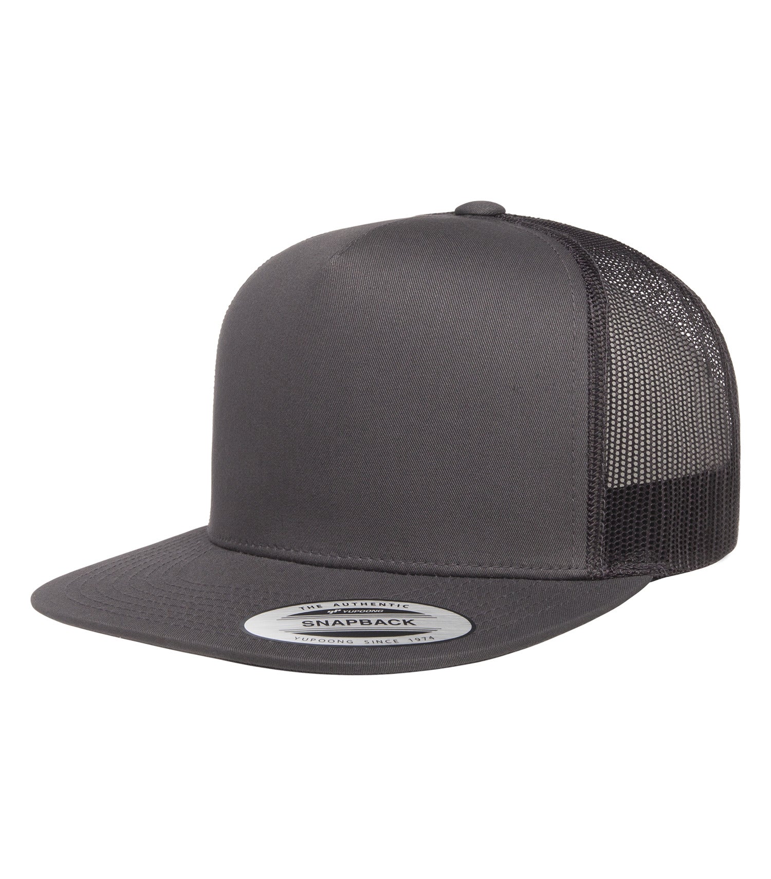 This high profile trucker brings bold, timeless style with a structured 5-panel build and flat visor that makes a statement. Designed with a poly/cotton front for easy decoration and breathable mesh back panels, its built for standout branding and all-day comfort.