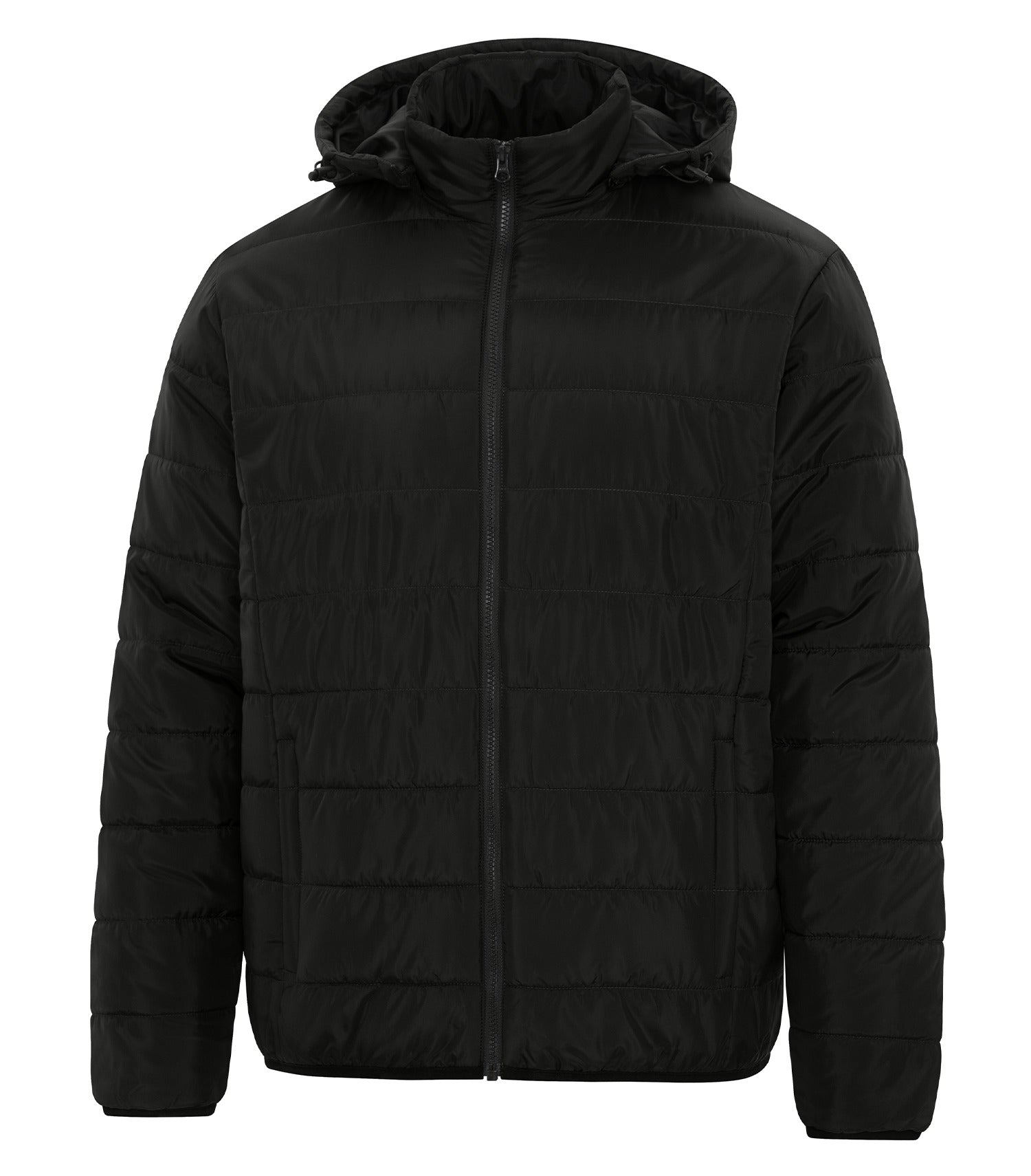 - 100% polyester taffeta 3-panel detachable hood with adjustable drawcord and toggles